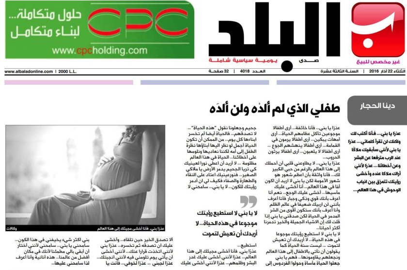 عذرًا بني٬ فأنا أخشى مجيئك إلى هذا العالم… عذرًا لأنني أخشى عليك غدر البشر وظلمهم… عذرًا لأنني أخشى عليك ألا تصدق الخير حين تلقاه… وأخشى عليك ان تصدقه ثم تخسره… عذرًا بني لأنني اتخذت قرارا عنك… لأنني أخشى أن يأتي يوم تلومني فيه لأنني انجبتك… عذرًا لجبني … عذرًا لخوفي… فأنت يا بني اكثر شيء يخيفني في هذا الكون… سامحني يا بني… سامحني لأنني أختار أن أبقي بالي مطمئنا لأنك في مكان أفضل من عالمنا… هذه أنانية وأنا أعرف لذا سامحني عليها…