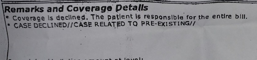 I should be dying the next time I go to the ER; but wait; the insurance might not cover a dying case because well, it’s a dying case and the person is dying anyway, let this person pay just before he/she dies.