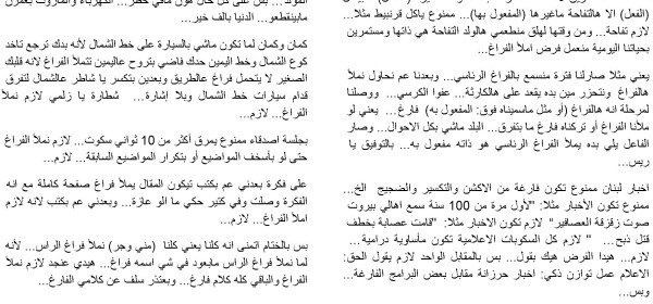 بالزمانات ايام المدرسة، كان يكون عنا فرض اسمه “املأ الفراغ”، يعطونا مثلا جملة “اكل الولد …” وكان علينا نملأ الفراغ بالمفعول به…وياي شو طلعنا كلنا